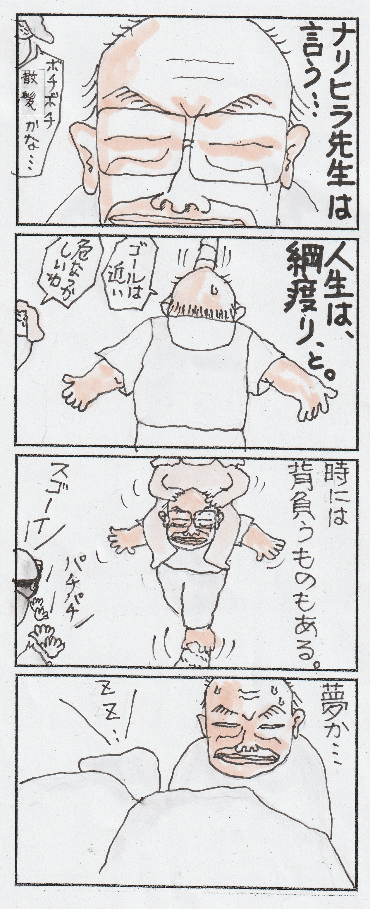 人生は・・ 綱渡り!! 2022年10月29日 00:00 ナリヒラ先生は 言う、、人生は、綱渡りだ!と。そして、最近こそ、なくなったが、、よく落ちる夢を見たのだと。僕も、少し、考えてみた。確かに、綱渡りの、、連続だった、、かもしれない。落ちても、10センチ下の 床だったかもしれないし、、奈落の底だったかもしれないし、、綱が、どこに張られていたかは別に、落ちるか渡れるかは紙一重だったに違いない。あれ?まるで過去のことのように語っているけど、、現在の方が、よっぽど、綱渡りだ カテゴリなしの他の記事 < 前の記事次の記事 > コメント コメントフォーム 名前 コメント 記事の評価 リセット リセット 顔 星 情報を記憶 コメントを投稿する