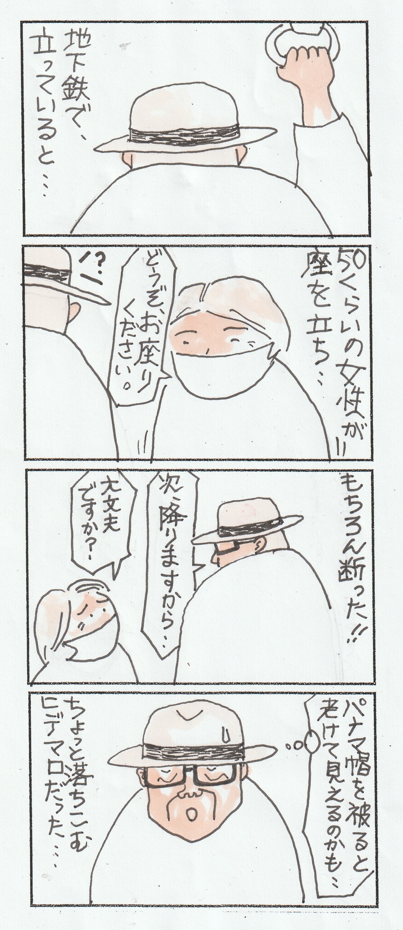 パナマ帽の・・ 印象!! 2024年06月05日 00:00 この話を、、いつも通ってる接骨院の、若い女性スタッフに話すと、、えー、そんなことありませんよ、、と即行で否定してくれたので、、安心した。ちょっと、、帽子がどうであろうと、老けて見える時は、、見える!背筋を伸ばす。スタスタと早歩きする。心掛けているつもりだが、油断すると地下鉄みたいなことが起きる。気をつけなきゃね【お知らせ】ブログ更新のお知らせを受け取る方法がLINEからライブドアアプリに変わりました!こちら↓の画像からぜひフォローをお願いします。 カテゴリなしの他の記事 < 前の記事次の記事 > コメント コメントフォーム 名前 コメント 記事の評価 リセット リセット 顔 星 情報を記憶 コメントを投稿する